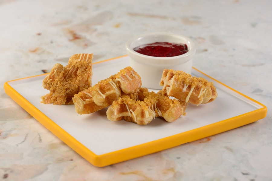 EPCOT at Walt Disney World Resort is joining in on the yummy treats of the Guardians of the Galaxy as well! Connections Café now has the Perfect Sovereign Waffle Bites that are topped with a red berry dipping sauce! You can also grab a Guardians of the Galaxy Cookie right next to the out-of-this-world Guardians of the Galaxy: Cosmic Rewind attraction at the Mission: SPACE Popcorn Cart.