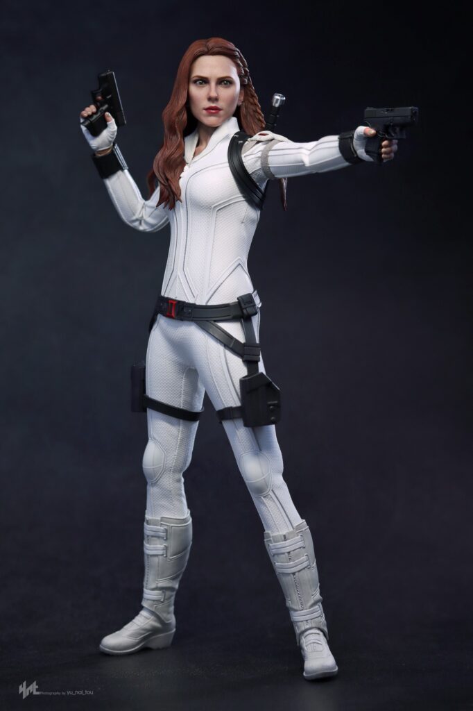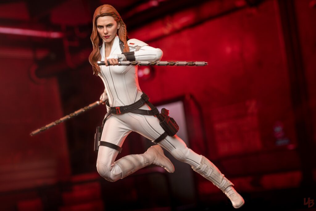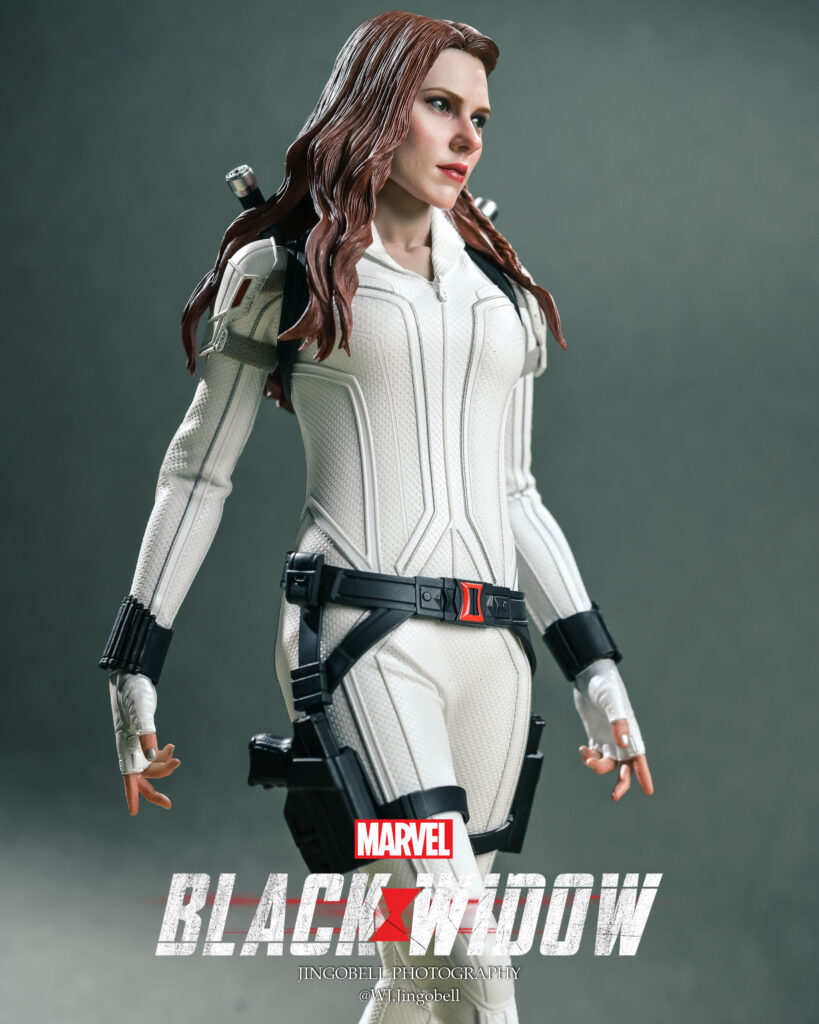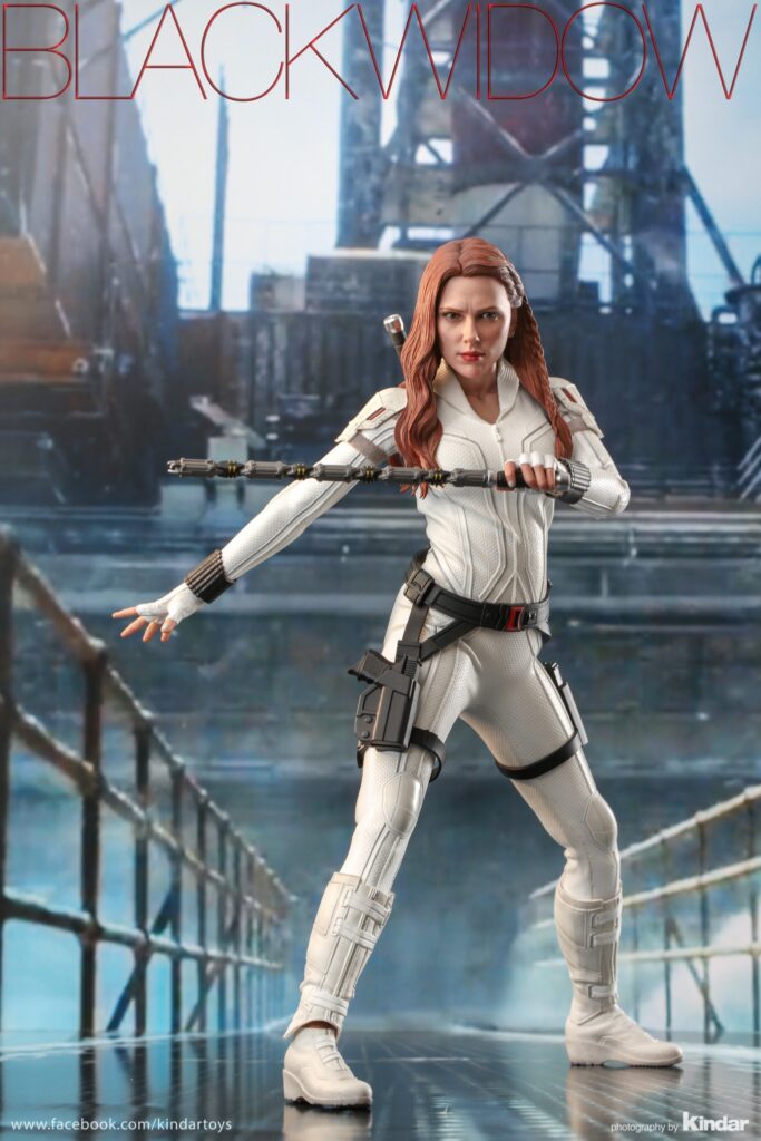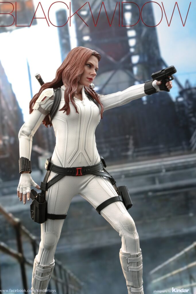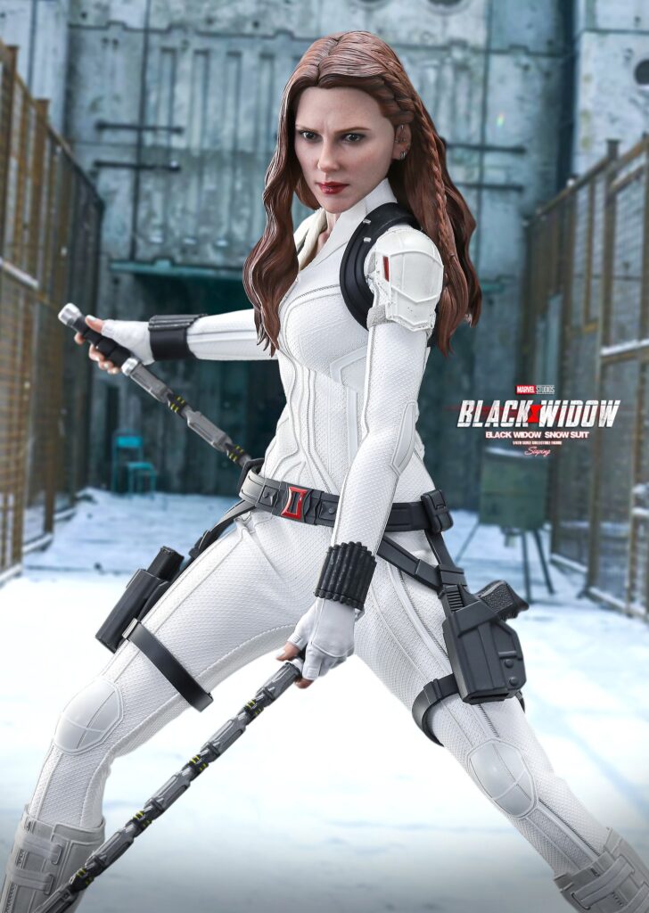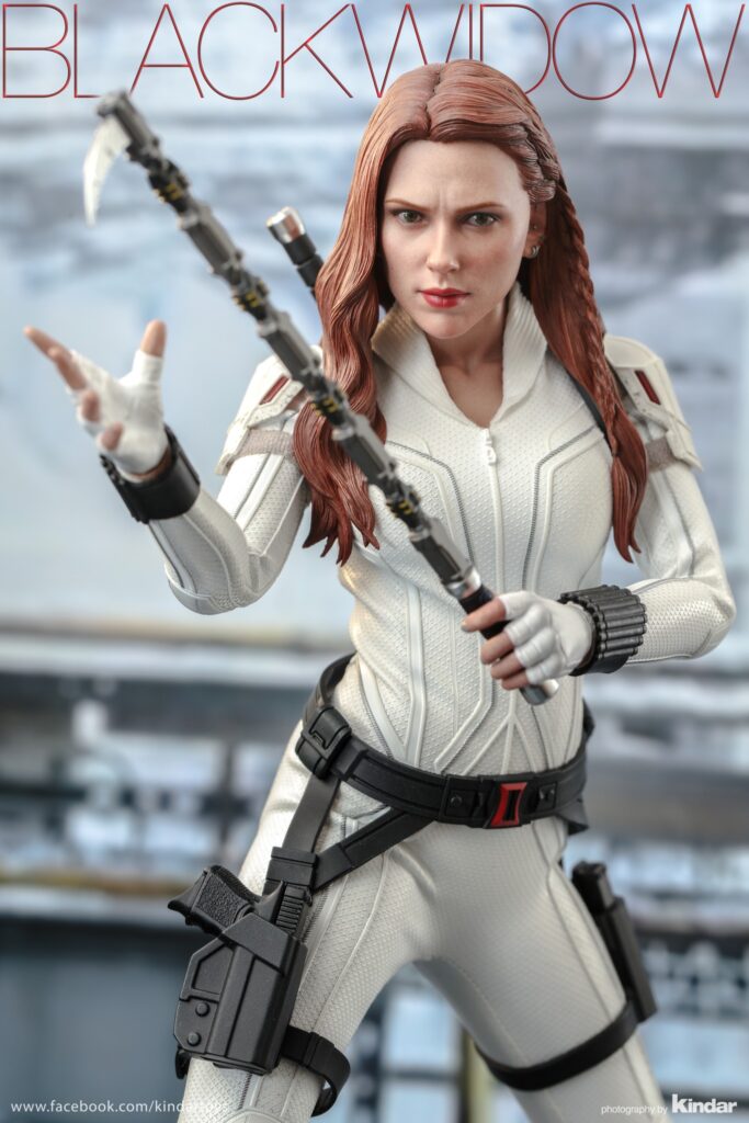Crafted based on the screen appearance of Scarlett Johansson as Natasha Romanoff/Black Widow in the movie, the figure features a newly developed head and hair sculpture, finely tailored white tactical uniform, highly-detailed weapons including a pair of standard batons and a pair of articulated batons with 3 types of interchangeable tips enable different battling styles, pistols, interchangeable hands, and a figure stand.