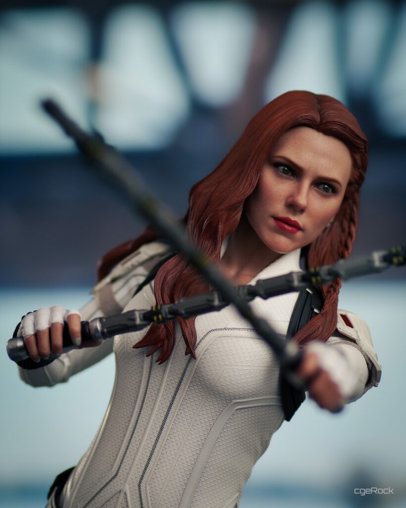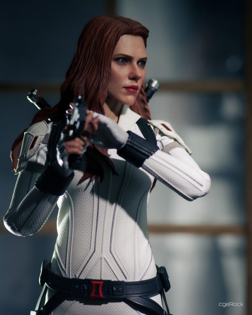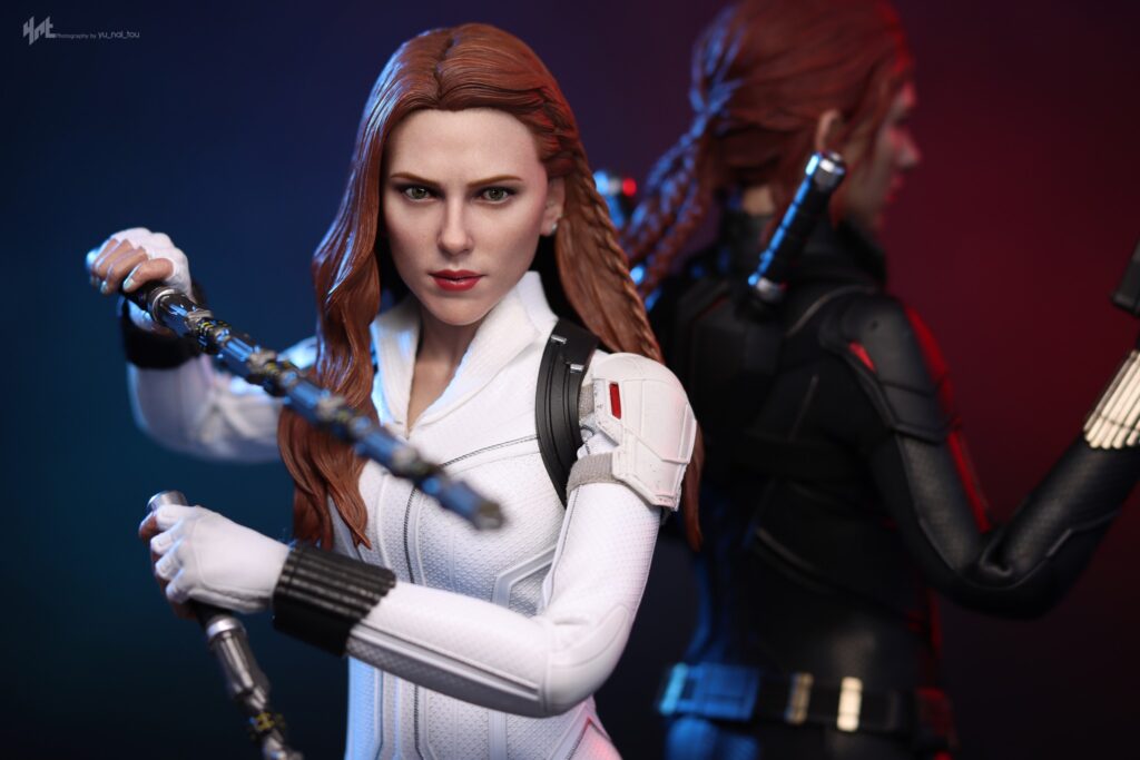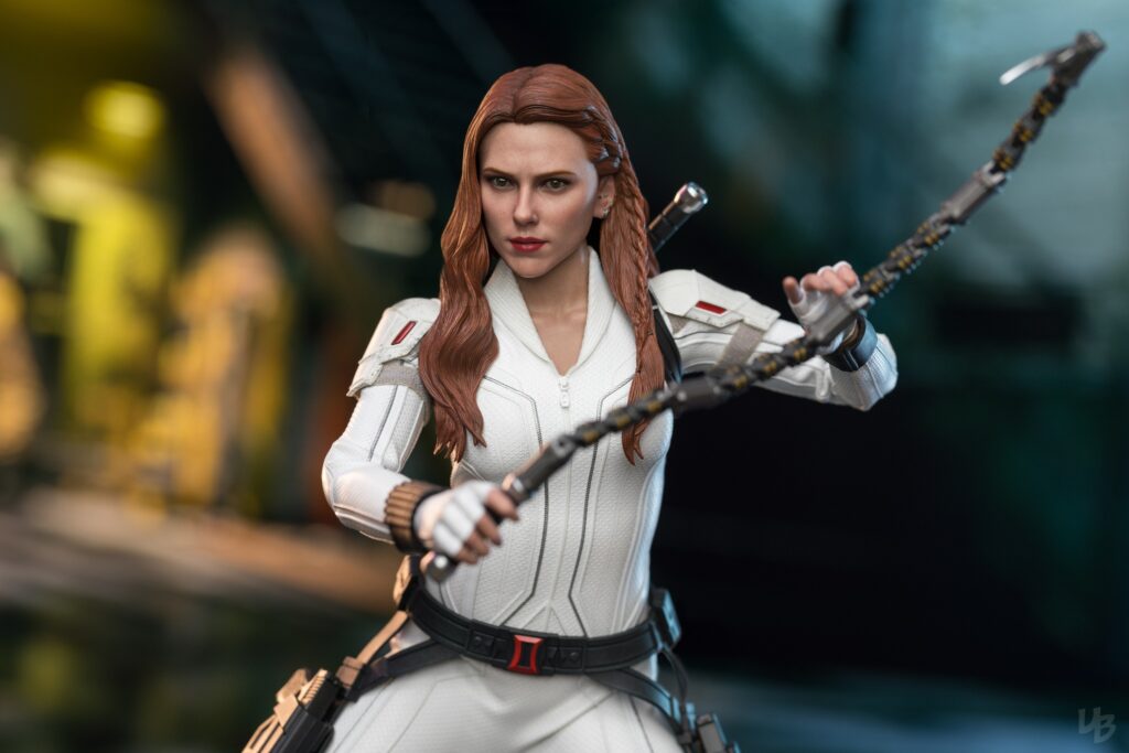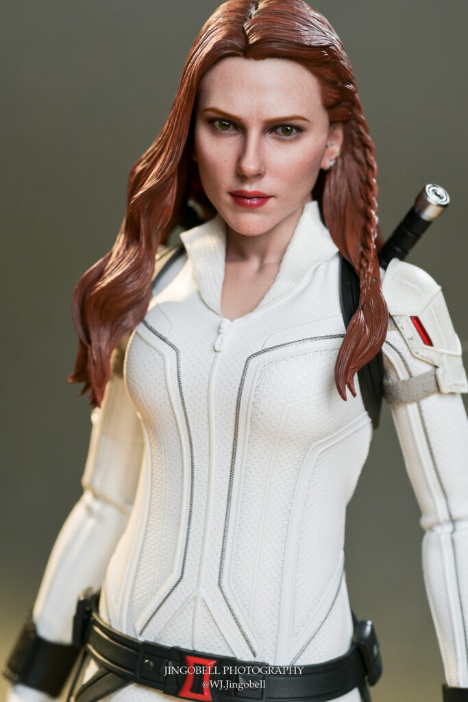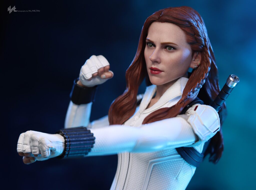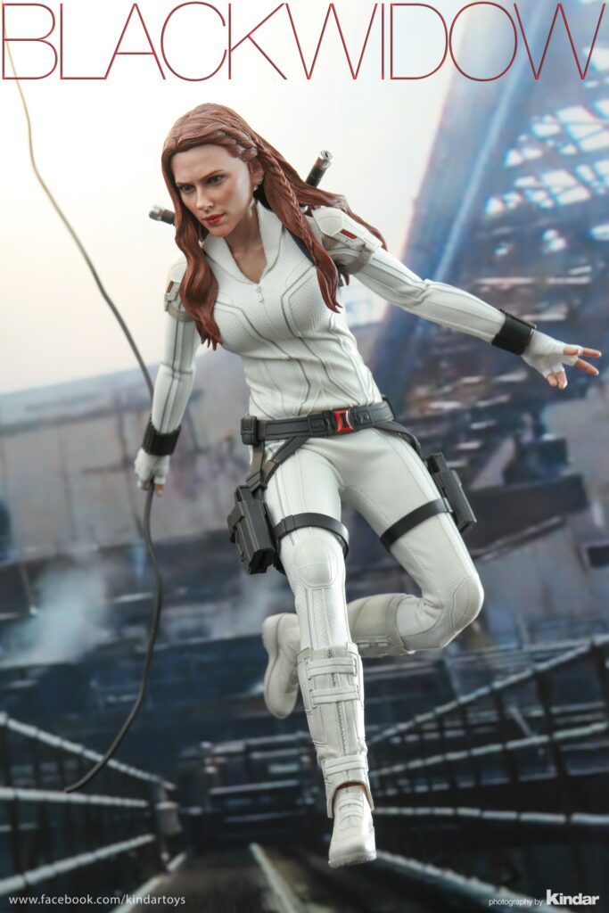 Crafted based on the screen appearance of Scarlett Johansson as Natasha Romanoff/Black Widow in the movie, the figure features a newly developed head and hair sculpture, finely tailored white tactical uniform, highly-detailed weapons including a pair of standard batons and a pair of articulated batons with 3 types of interchangeable tips enable different battling styles, pistols, interchangeable hands, and a figure stand.
