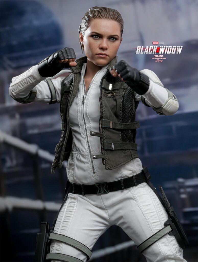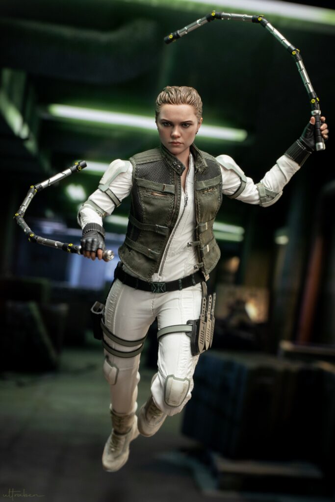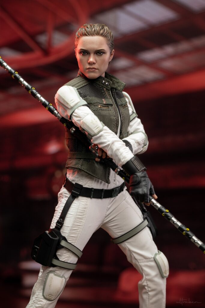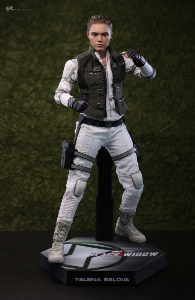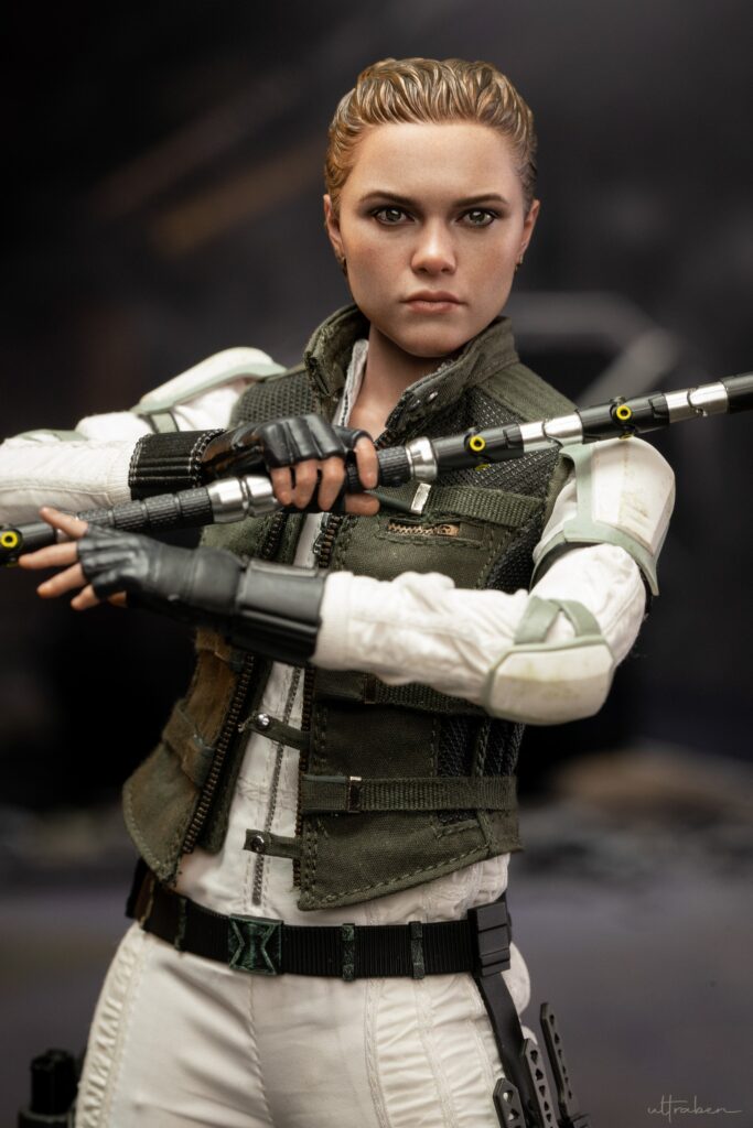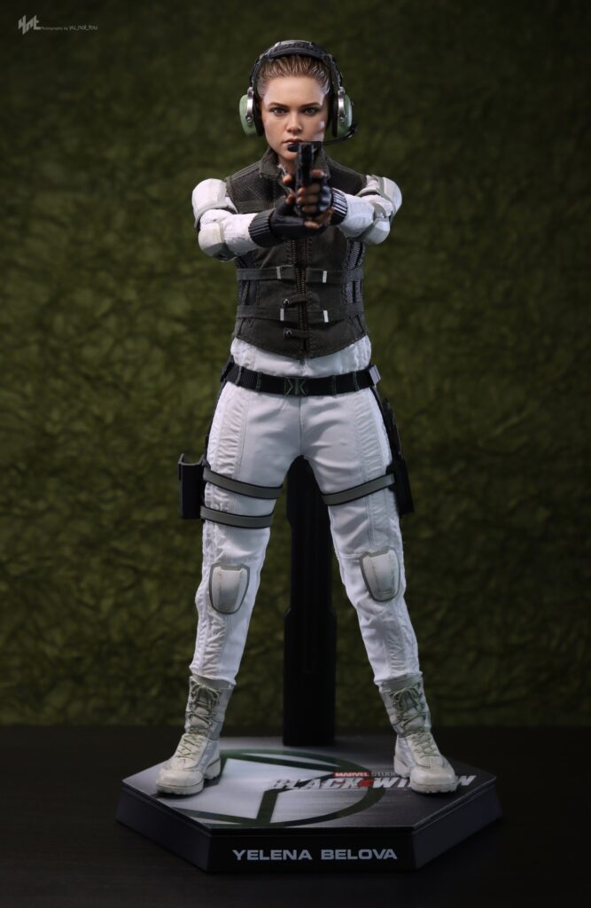 Today Hot Toys is sharing blogger photos of the 1/6th scale Yelena collectible figure in her tactic vest with many pockets.