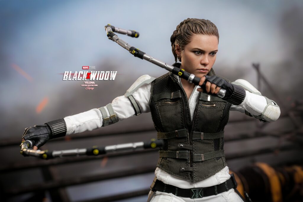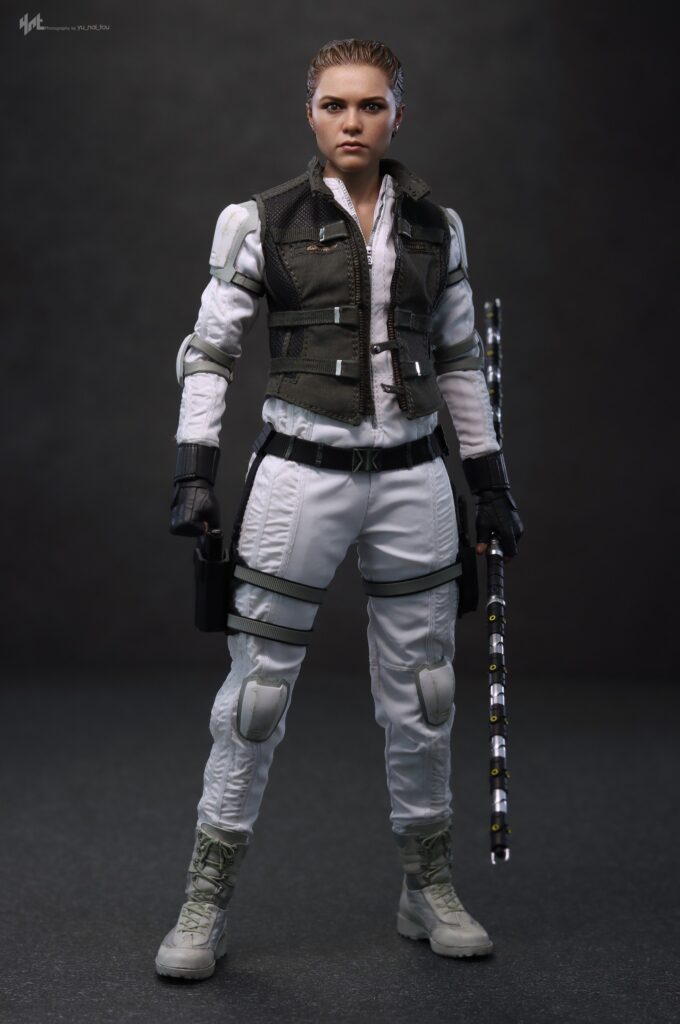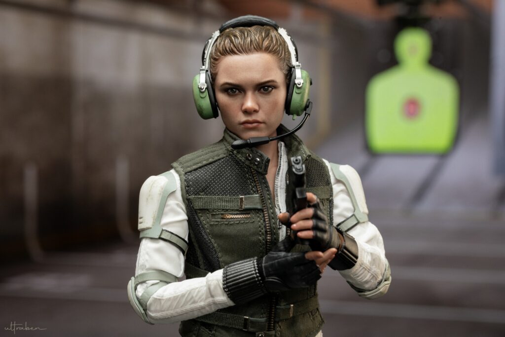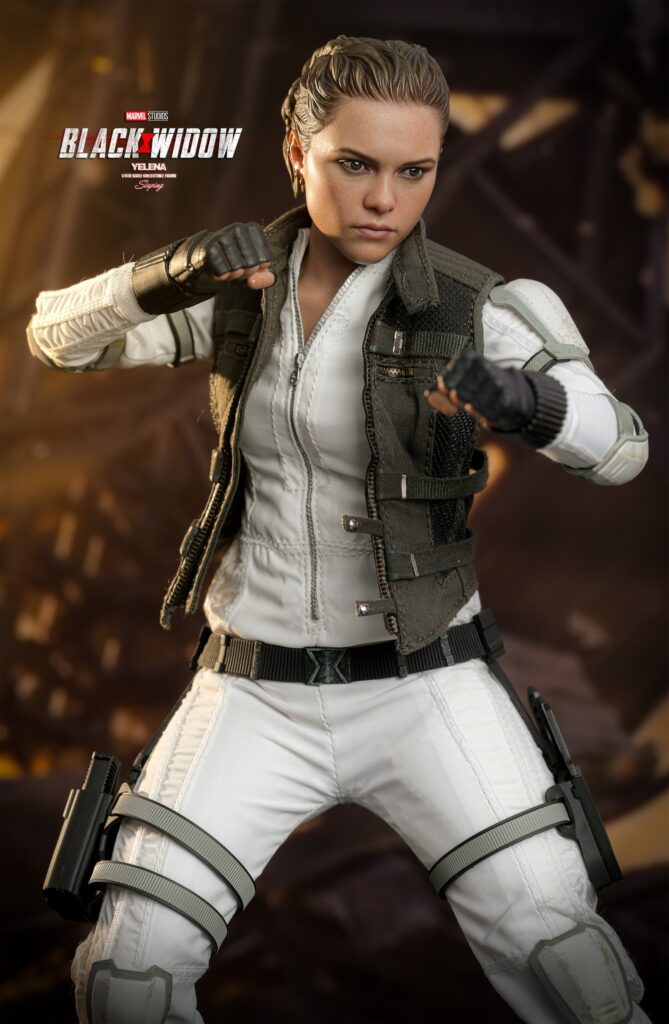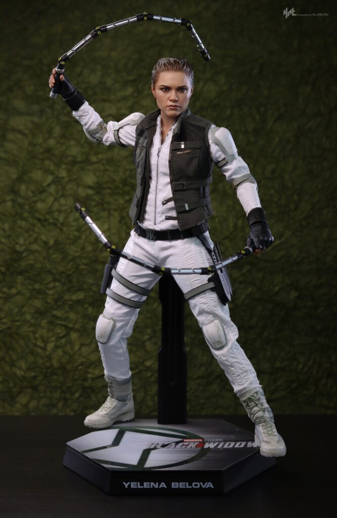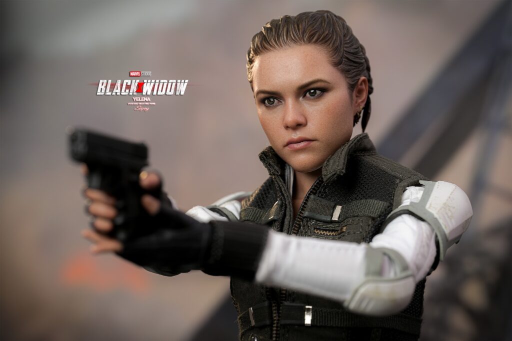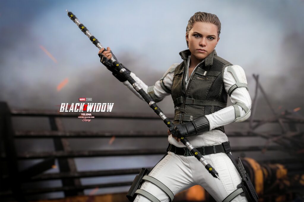 Today Hot Toys is sharing blogger photos of the 1/6th scale Yelena collectible figure in her tactic vest with many pockets.
