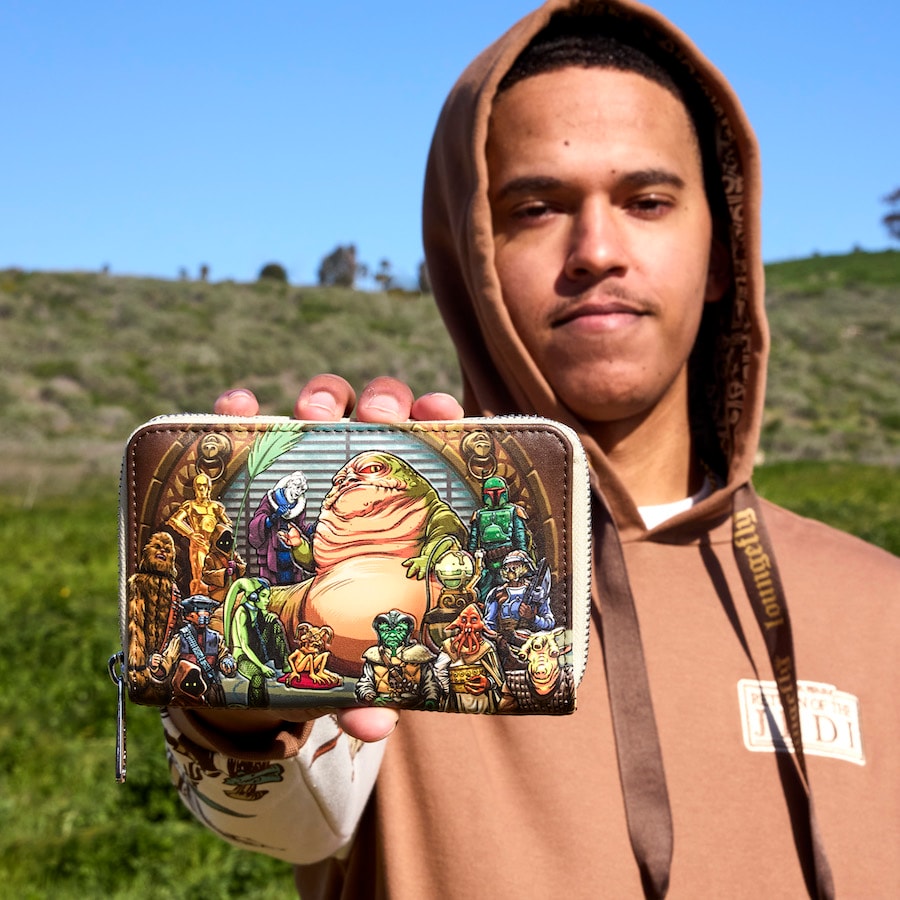 His high exaltedness, the Great Jabba the Hutt, has decreed that the newest additions to your collection will be the all-new Jabba’s Palace mini backpack and matching zip-around wallet from Loungefly, decorated with iconic cinematic scenes from Return of the Jedi. For those looking for new decoration to add to their palaces, check out the Han in Carbonite mini backpack complete with a 3D molded and debossed character art featuring Han Solo.
