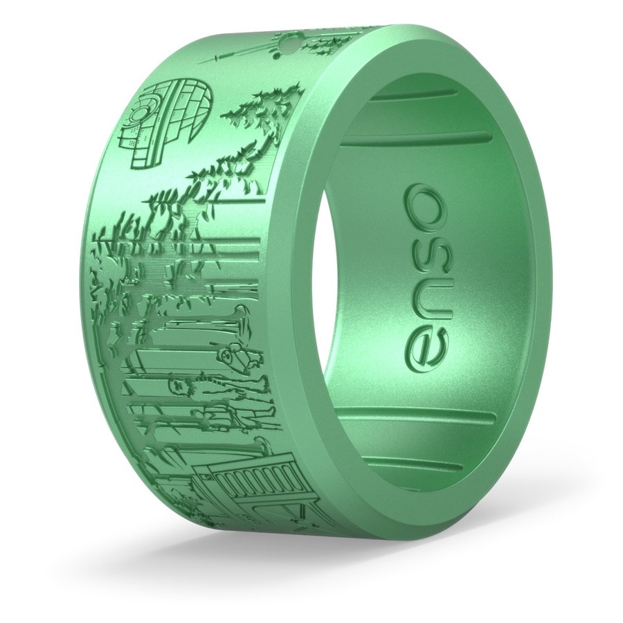 Those into statement pieces will not want to miss these new additions from Her Universe. From bomber jackets with classic artwork to athletic jerseys for a more relaxed fit, fans can sport their love for Return of the Jedi in style. But your fit is not complete without accessories, and Enso Rings has it all with their new Return of the Jedi wide ring collection, featuring two new styles showcasing the Forest Moon of Endor and Jabba’s Palace along with the newest addition to their Star Wars Galactic Core Collection, the Wicket Dualtone ring.