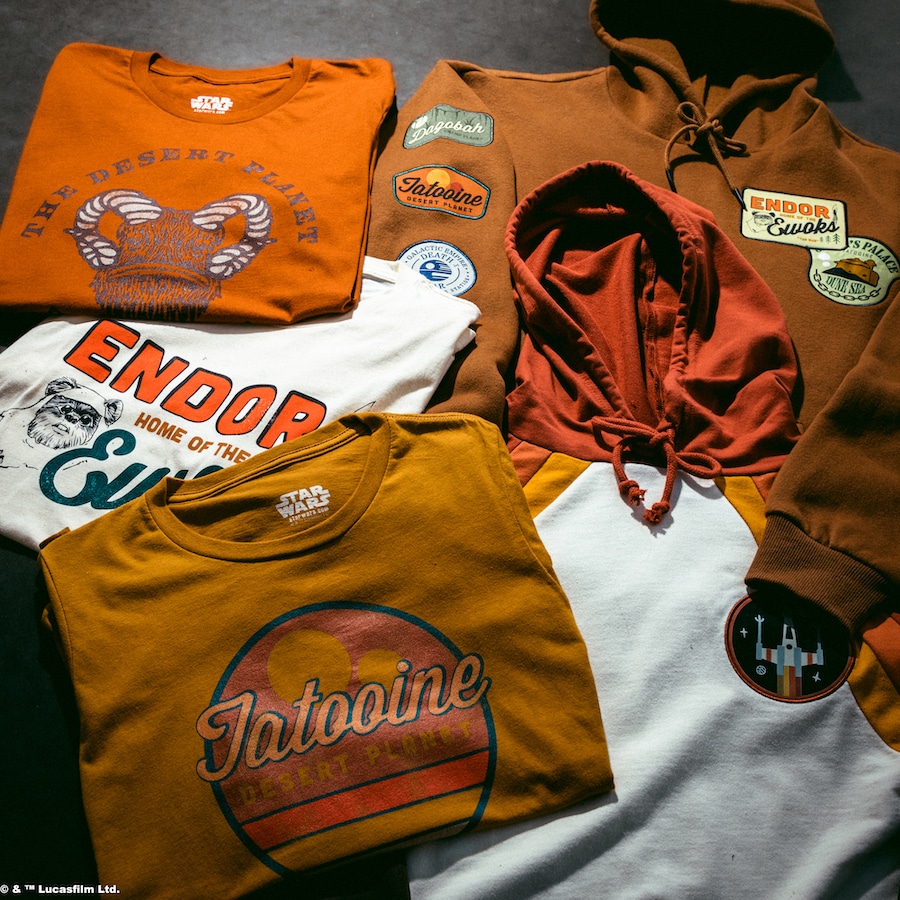 And coming soon this summer, fans can get their hands on the new Return of the Jedi Camp Collection from Heroes & Villains, featuring new Ewok-inspired tees, crewnecks, fashion bags, accessories and more. This collection is not one to miss!