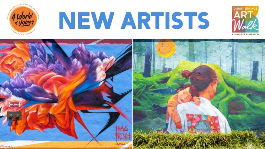 Dynamic artwork continues to grace the walls of the Disney Springs Art Walk: A Canvas of Expression as two artists recently added vibrant pieces as part of “A World of Voices,” which celebrates Asian American Pacific Islander Heritage Month at Walt Disney World Resort. Check out the two videos below to learn more about the amazing pieces created by Thao French and Andrew Hem, as well as what art means to them and the inspiration behind their work.