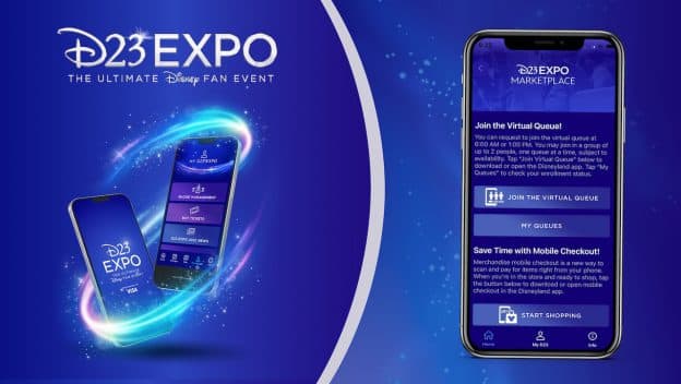 In order to use the virtual queue at D23 Expo, you will need to download the D23 Expo 2022 app and the Disneyland app. Guests do not need to be in the Anaheim Convention Center to join the virtual queue.