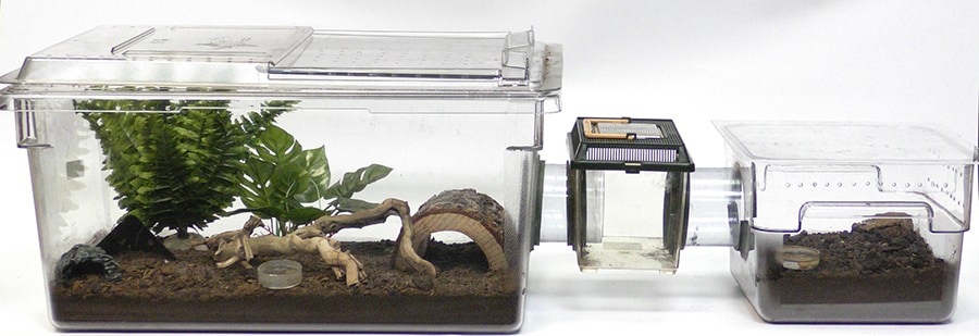 As part of their study to better understand tarantulas and their preferences, Dr. Austin and a team of cast members designed an interconnected habitat that gives the tarantulas an opportunity to choose their preferred environment. Think of it like a tiny home with a hallway between the living room and the family room, where the tarantulas get to decide which they want to visit. “If it all goes to plan, the answers to our questions will come directly from the tarantulas themselves via their behavior and choices,” says Dr. Austin.
