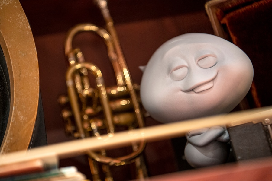 The Soul Cat Lounge is adorned with custom artwork from Pixar featuring nods to the film including record labels, concert posters and portraits of jazz legend Dorothea Williams and her bandmates. Thoughtful “Soul”-inspired details are subtly layered throughout the design including record players, instruments and Joe’s hat.