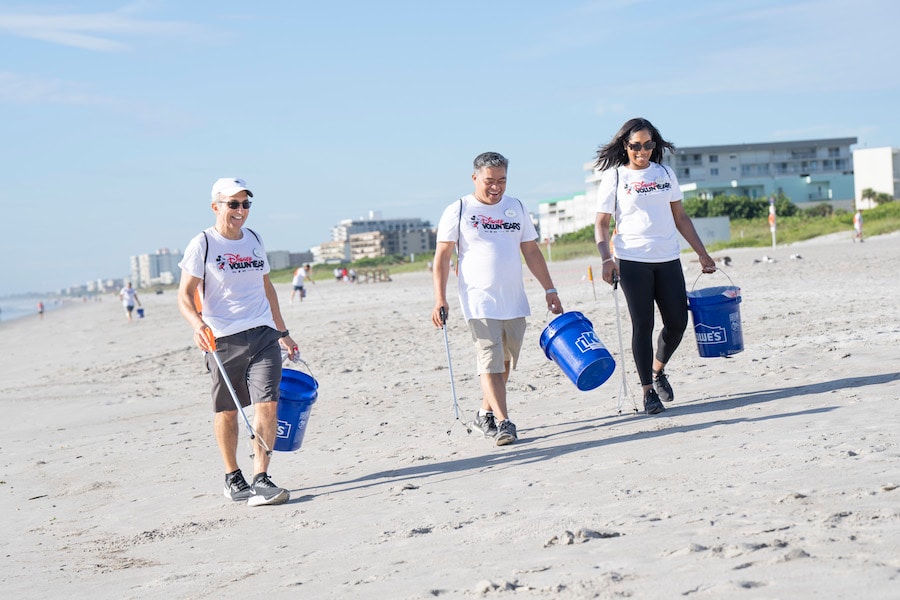 In partnership with Keep Brevard Beautiful, Disney Wish crew and shoreside cast members recently picked up trash along Cocoa Beach, near Disney Cruise Line’s homeport in Port Canaveral located on the east coast of Florida.