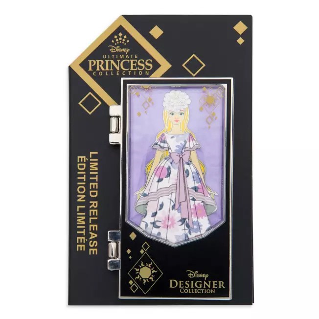 A companion to the Disney Ultimate Princess Celebration doll designed by Disney artist Tetsunosuke Saiki, this lovely limited release Rapunzel pin is rendered in an elegant art deco design and features a clear hinged window frame on the front. It’s one of the brightest lights of our Disney Designer Collection! Magic in the details