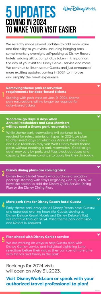 And today we’re thrilled to share some more exciting news just in time for the launch of 2024 bookings for theme park tickets, Disney Resort hotel stays and packages at Walt Disney World on May 31. These updates will make planning your future Walt Disney World visits simpler and easier, so you can further enjoy all we have to offer and make more memories: