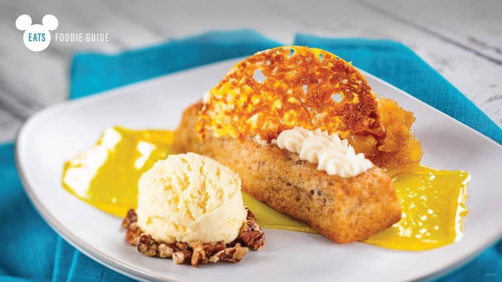 Hummingbird Cake: Banana cake with pineapple, coconut, pecans, and cream cheese frosting with banana sorbet (New)