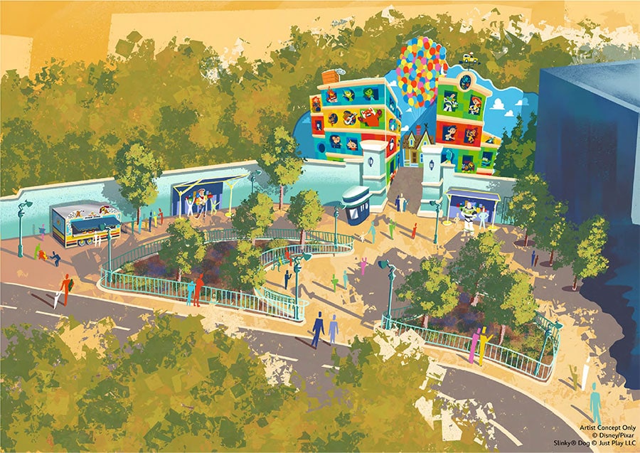 Across the way at Walt Disney Studios Park, “Toon Plaza” will soon be transformed into an immersive experience paying tribute to Pixar films. Walt Disney Imagineering has been working with Pixar artists to develop this whimsical space including a new raised backdrop featuring Ember and Wade from the upcoming original feature film, Disney and Pixar’s “Elemental.”