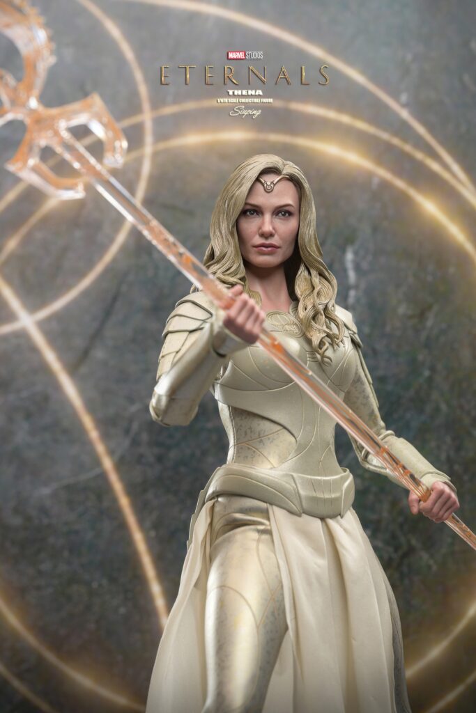 Hot Toys is unveiling blogger photos of 1/6th scale Thena collectible figure from the Eternals collection. Coming with stunningly-detailed weapons she imagines with cosmic energy.