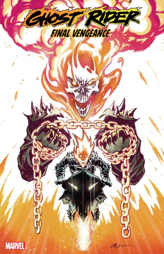 New York, NY— January 5, 2024 — New year, new GHOST RIDER! Continuing his acclaimed work on the character, writer Benjamin Percy will team up with artist Danny Kim to introduce an all-new Ghost Rider in GHOST RIDER: FINAL VENGEANCE #1. Hitting stands in March, the series will see the Spirit of Vengeance turn down a dark road as he abandons Johnny Blaze and possesses a powerful Marvel supervillain instead. It promises to be a very different chapter for the iconic flamehead and like other highly-anticipated launches, it’ll stand out in comic shops with a special FOIL VARIANT COVER. Fans can see the piece by artist Benjamin Su today as they gear up to learn the identity of the all-new GHOST RIDER.