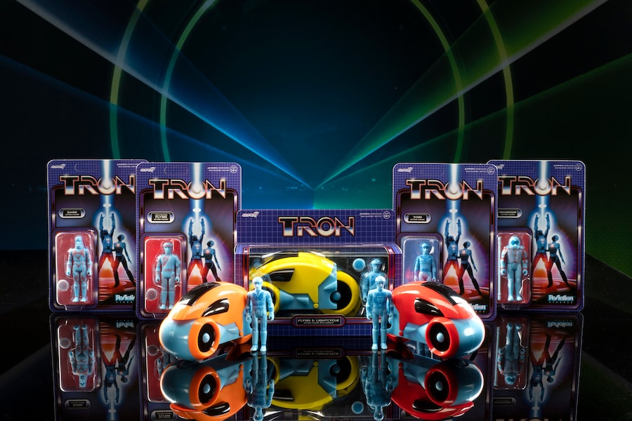 One of the most impressive parts of this collection is the TRON Identity Program, an all-new retail experience. It offers guests a customizable “Program” action figure and identity chip that can be used to “re-program” other merchandise such as the interactive Identity Discs and Remote Control Lightcycles.