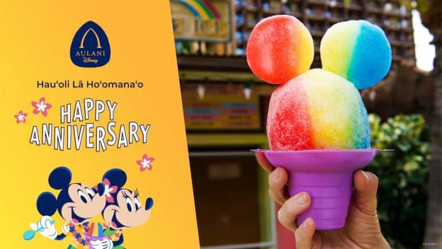 One of the best ways to celebrate today is with something sweet from Pāpālua Shave Ice. So, raise a Mickey-shaped shave ice and join us in wishing Hau‘oli la Ho‘omana‘o – Happy Anniversary – to our entire ‘ohana Aulani (Aulani family) both near and far!