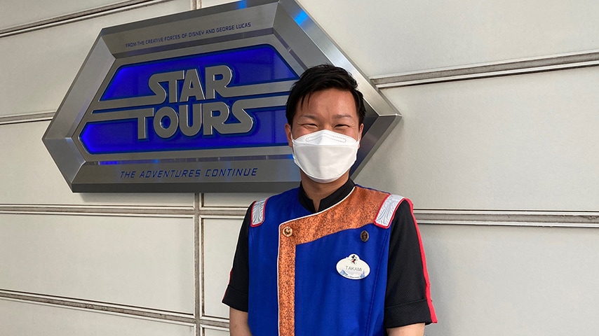 “One of the advantages of working at Star Tours is that I get to [act in this story] every day, as I play a very important role! I do my best to immerse our guests in Star Wars stories and help them enjoy the best experience!”