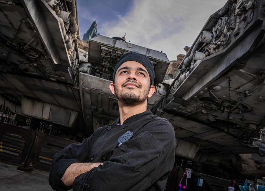 Christian began working on Batuu in June of 2021 as a busser at Docking Bay 7 Food and Cargo, but shortly after sharing his interest in cooking professionally, he stepped into his current role as a cook. Working alongside a team at Disney dedicated to facilitating accommodations for cast members, Christian’s leadership found creative ways to help him transition into the kitchen.