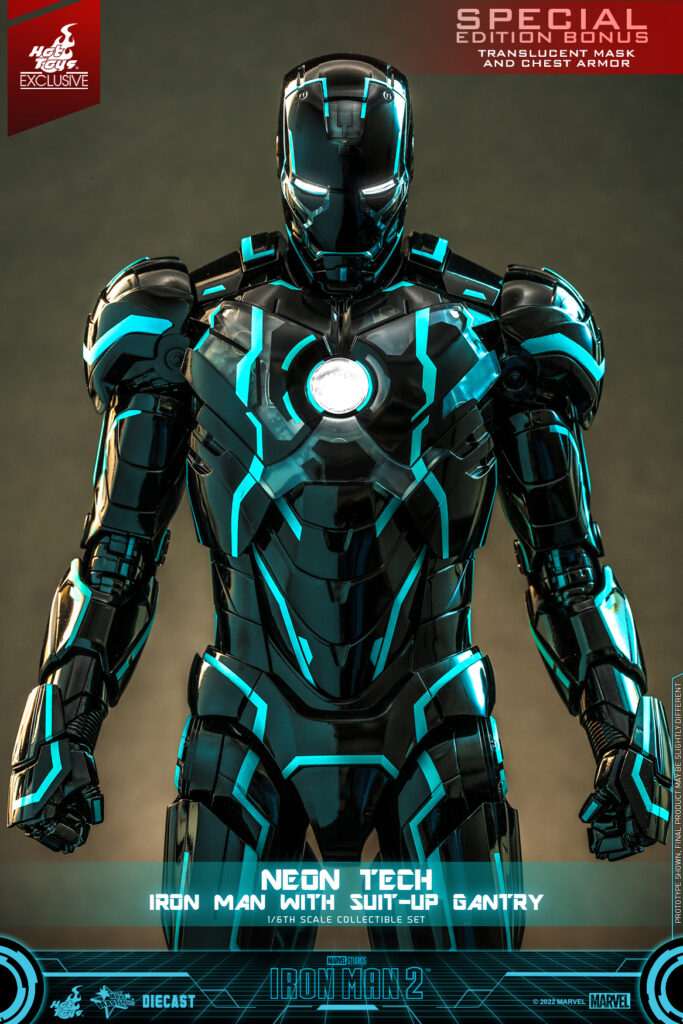 To further expand your unique displays, Hot Toys is delighted to present a new 1/6th scale Neon Tech Iron Man with Suit-Up Gantry collectible set, a fascinating masterpiece that is instantly eye-catching. The Special Edition with extra accessories is offered exclusively in Hot Toys Shanghai Store.