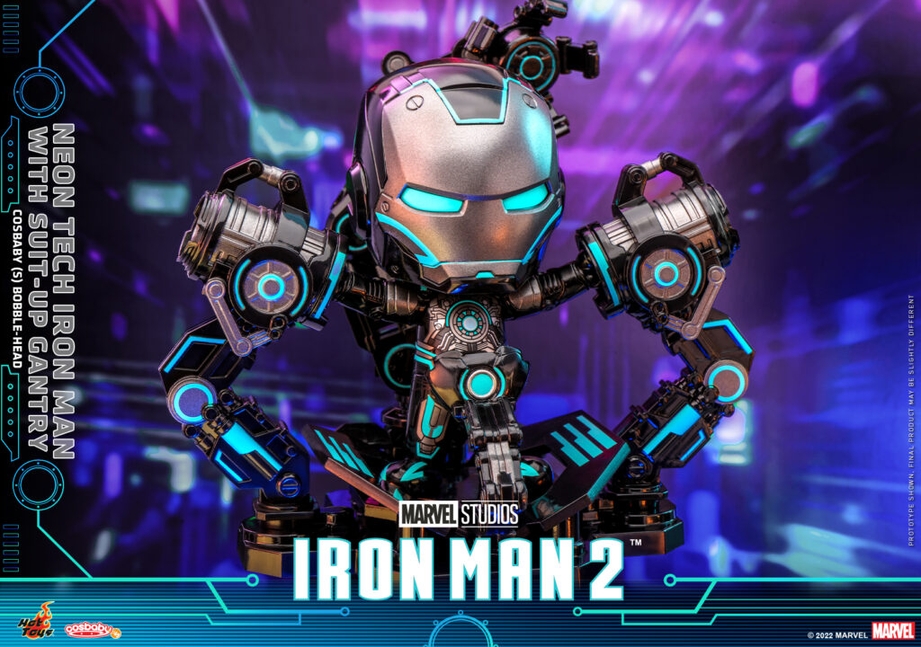 Iron Man 2 – Neon Tech Iron Man with Suit-Up Gantry Cosbaby (S) Bobble-Head