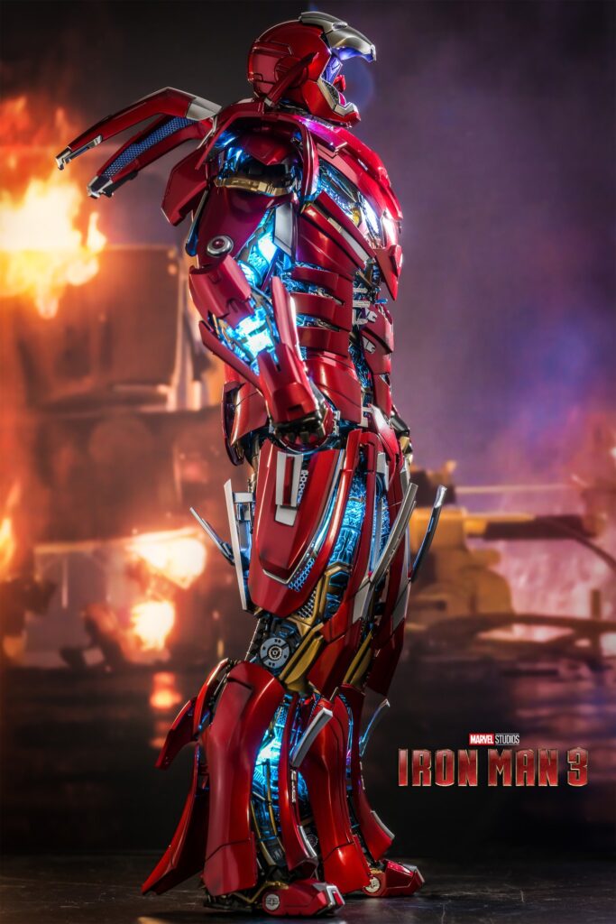 Today, Hot Toys is sharing blogger photos of 1/6th scale Silver Centurion (Armor Suit Up Version) collectible figure from Iron Man 3 collection. Features specially designed armor parts simulate the real time suiting up process and to illustrate its mechanical beauty.
