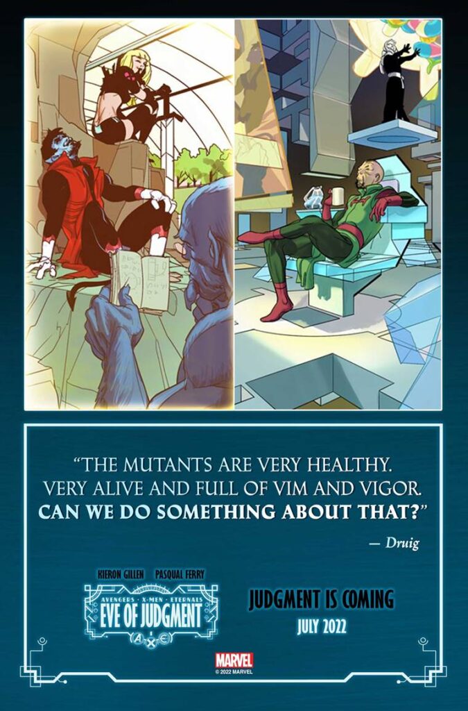 Eternals know that the mutants have conquered death. But what are they going to do about it? The oldest immortals on Earth size up the newest, and the doomsday clock starts to tick toward Judgment Day…