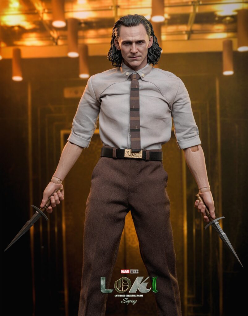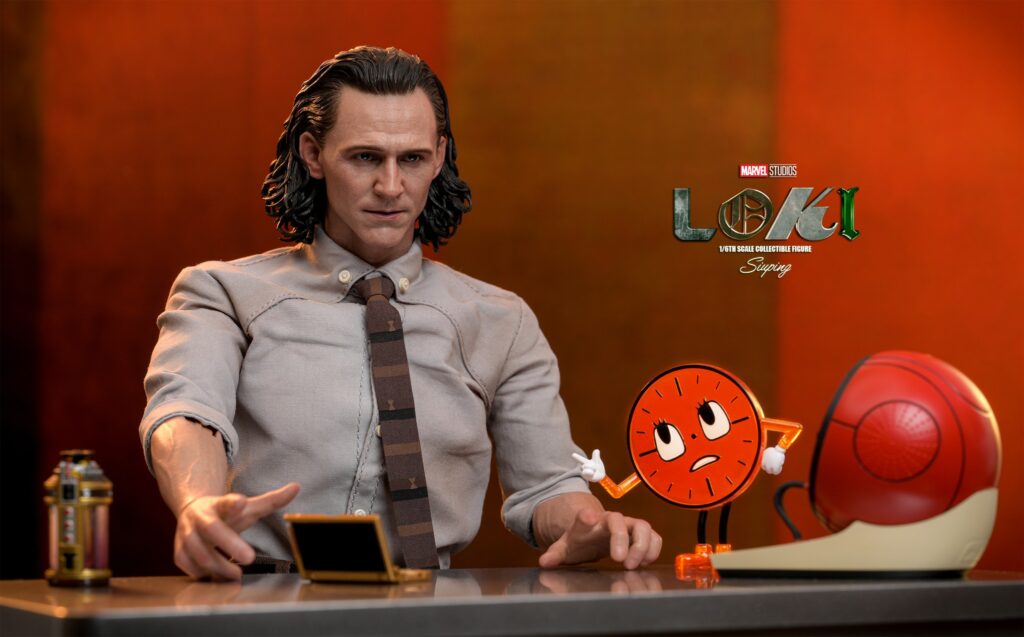 Crafted based on the appearance of Tom Hiddleston as Loki wearing the TVA Suit outfit as seen in the series, the figure features a newly developed head sculpt, elaborate costume with screen authenticity, signature weapons and highly-detailed accessories including a sword, a sword with fire effects, a pair of daggers, Miss minutes with different expressions, a computer, a tempad, a collar, a reset charge device with effect, a Time Door backdrop and a themed figure stand.
