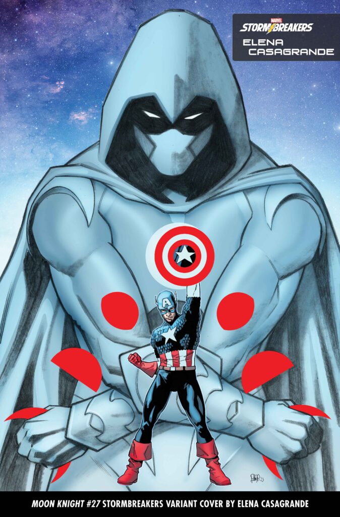 New York, NY— August 8, 2023 — Next month kicks off a new era for Marvel’s Sentinel of Liberty in CAPTAIN AMERICA #1! Acclaimed writer and filmmaker J. Michael Stracyznski and superstar artist Jesús Saiz’s CAPTAIN AMERICA #1 launch a saga that spans Steve Rogers’ entire history as an evil that took root in his youth reemerges to threaten his future! To celebrate the new launch, the 2023 class of Marvel’s Stormbreakers have depicted Cap jumping into action alongside his fellow heroes in the latest monthly Stormbreakers variant cover program. Warming up for his new adventures with a wide range of heroes including Blade, Ironheart, Moon Knight, and more, these star-spangled team-ups will grace stands throughout September.