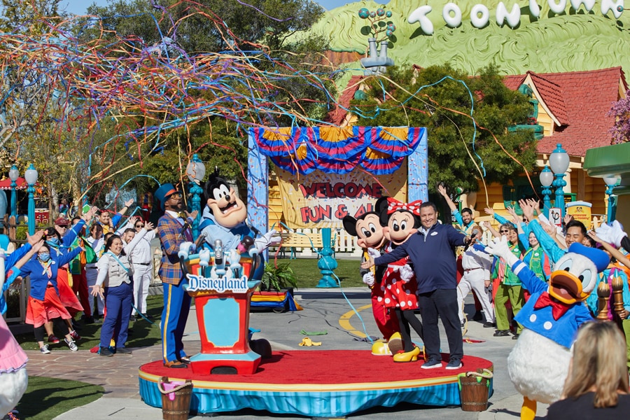 Yesterday, Disneyland Resort President Ken Potrock hosted a dedication moment in the land, welcoming everyone back to Mickey’s Toontown. Ken was joined by Mickey Mouse and the residents of Toontown to celebrate this milestone with cast members and media. It was a perfectly playful celebration!