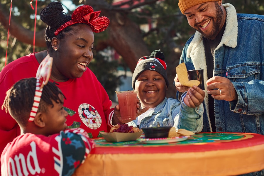 And don’t forget, the Disney Festival of Holidays Sip and Savor Pass is a terrific way to sample your way through a glorious day. The pass provides eight easy tabs you can redeem for select food and non-alcoholic beverages at participating Festive Foods Marketplace kiosks and dining locations.* In the spirit of giving, share your tabs with a friend!