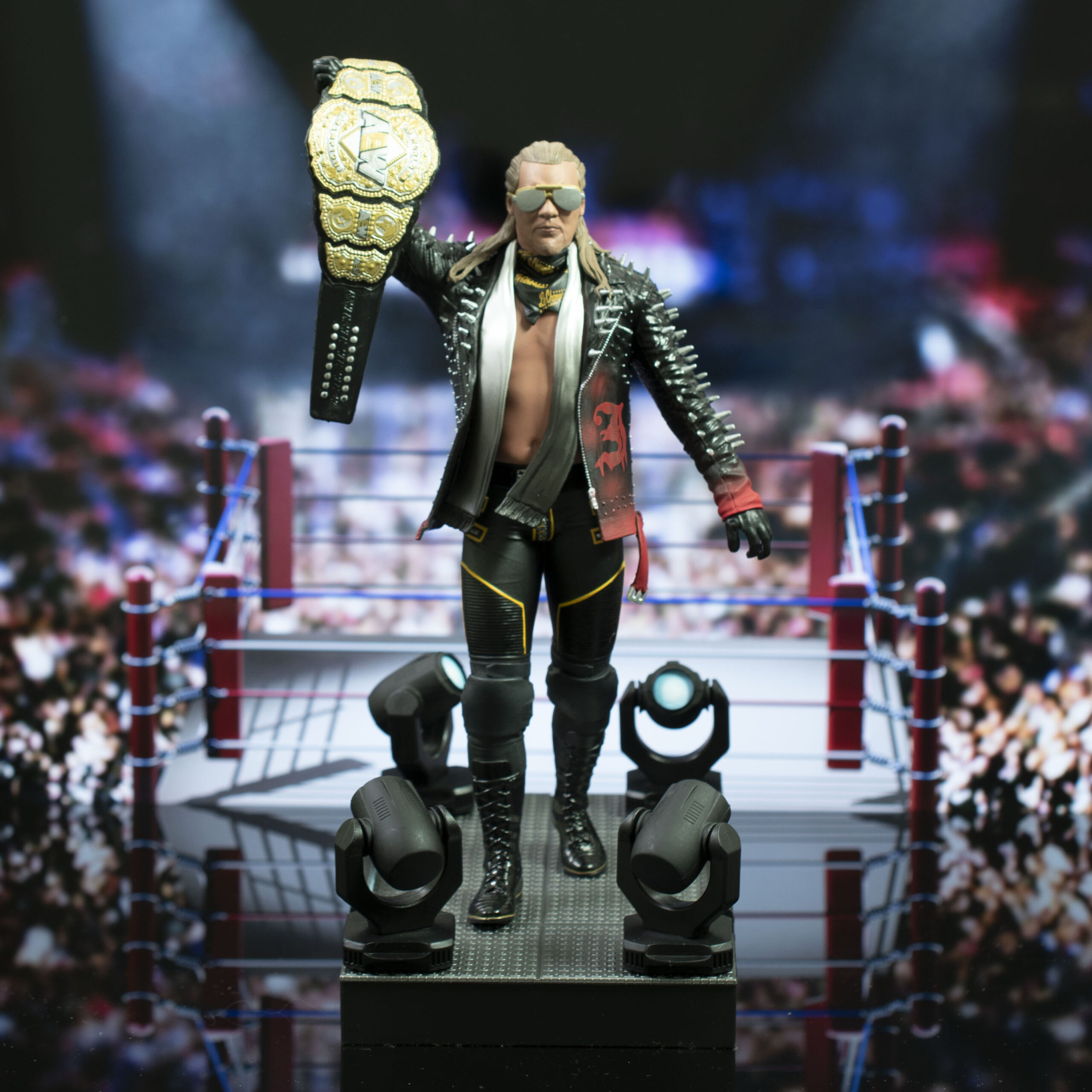 A Diamond Select Toys release! Y2J is in the building! Wearing his trademark spiked Painmaker jacket and holding aloft the title belt, AEW’s Chris Jericho strides down the ramp to the ring in the newest AEW Gallery Diorama from DST! Measuring approximately 10 inches high, this 1/8 scale sculpture is made out of high-quality PVC and features detailed sculpting and paint applications. It comes packaged in a full-color window box. Designed by Gabriel Cassata, sculpted by Oluf W. Hartvigson! SRP: $59.99