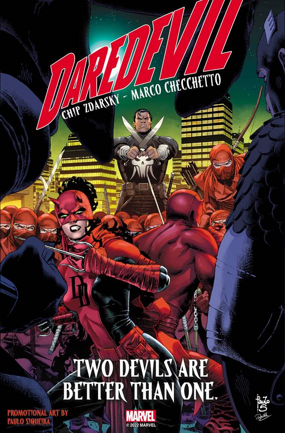 New York, NY— June 16, 2022 —WriterChip Zdarsky and Marco Checchetto Eisner-nominated work on DAREDEVIL is reborn in a brand-new run kicking off on July 13! Taking place in the aftermath of DEVIL’S REIGN, DAREDEVIL #1 will spotlight both Matt Murdock and Elektra Natchios and their vastly different journeys as Daredevil. Their ambitions and bold choices as heroes will transform Hell’s Kitchen and have a major impact on the Marvel Universe at large. Right now, fans can get a peek at some of what they’ll be up against in new promotional artwork by Paulo Siqueria. The joint pieces tease both Daredevil’s biggest challenges for the next year including confrontations with the Avengers and the Punisher-led Hand as well as further exploration of Luke Cage’s new role as mayor of New York City. In addition, DAREDEVIL #1 will come out the gate with a shocking reveal that ties back to Zdarsky’s earliest stories on the title and brings thrilling new insights to key moments in Daredevil history.