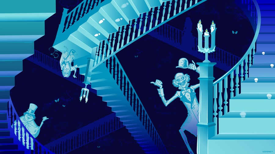 If you love the Haunted Mansion as much as I do, this year’s wallpaper collection is perfect for you! Our incredibly talented creative team designed these three spooky wallpapers for all of us happy haunts to enjoy for the Halfway to Halloween celebration all of which can be downloaded for your phone, desktop, Apple Watch, and iPad. Let’s take a look at them now!