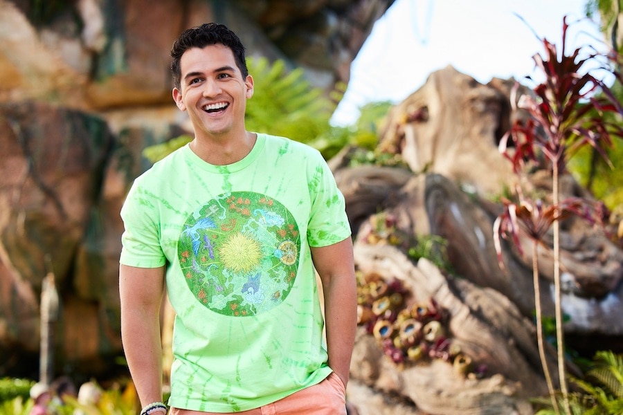 If you’re less the adventurer and more the artist, look no further than The Land Collection, inspired by unique artwork of locations, creatures, and vegetation from Pandora. This vibrant tee features one of these designs along with a green tie-dye wash that evokes Pandora’s natural beauty. The tee is available now at Disney’s Animal Kingdom and is coming to shopDisney later this month.