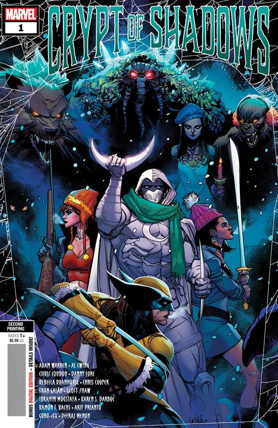 New York, NY— November 15, 2022 — CRYPT OF SHADOWS #1 and MOON KNIGHT ANNUAL #1 will return to comic shops next month! These sold-out issues were packed with adventures starring Marvel’s greatest horror icons including Werewolf by Night, Else Bloodstone, Man-Thing, Moon Knight, and more. MOON KNIGHT ANNUAL #1’s new edition will come complete with an all-new cover while CRYPT OF SHADOW #1 receives a festive makeover for its Second Printing, and fans can grab both of them just in time for the holiday season on December 14!