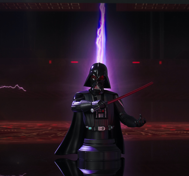 A Gentle Giant Ltd. Release! Rebels beware! This all-new bust of Darth Vader, Dark Lord of the Sith, captures him as he appeared in the Rebels animated series, with his red-tinted lenses and red lightsaber activated. This deluxe 6-inch bust is limited to only 3,000 pieces, and comes packaged in a full-color window box with a numbered certificate of authenticity. Designed by Barry Bradfield, sculpted by Paul Harding! (Item #AUG212428, SRP: $125.00)