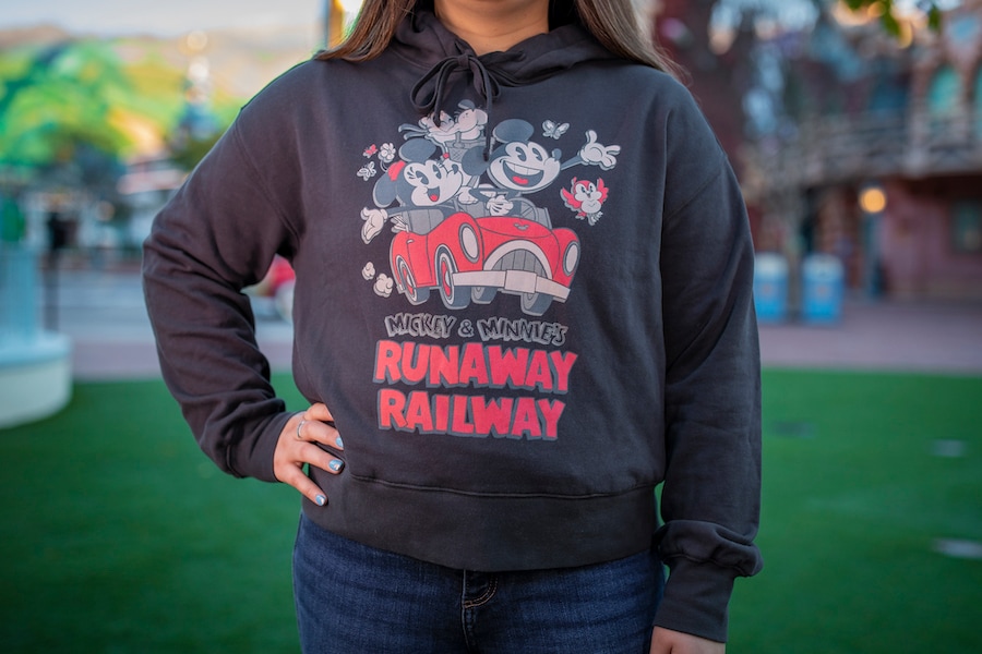 Strike up the marching band! When things cool down, Mickey & Minnie’s Runaway Railway Womens Fleece Pull Over Hoodie is here to save the day!