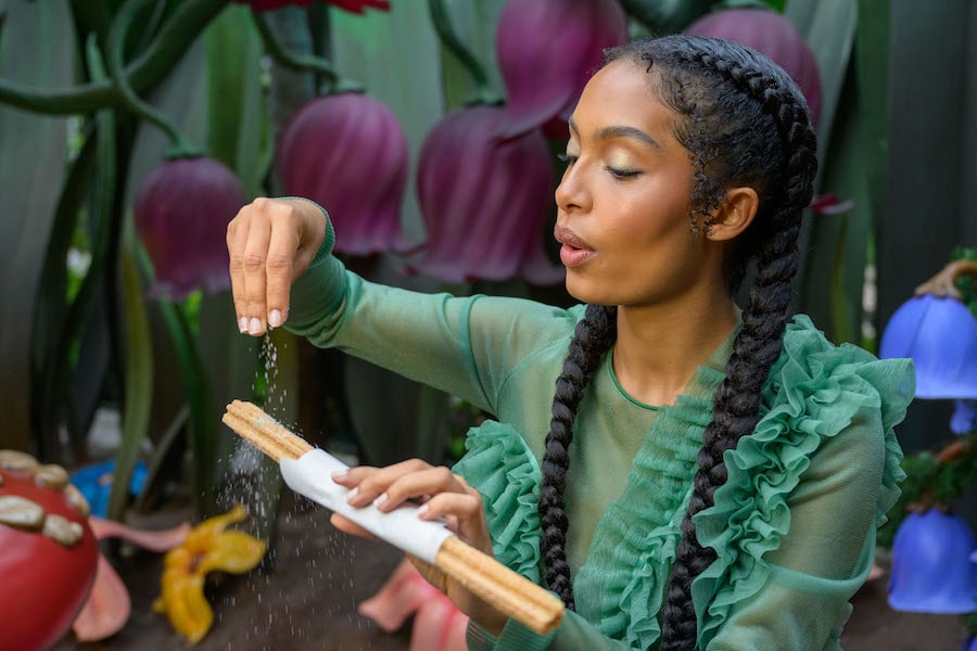 She capped off her perfect day with some food and beverage offerings including a Disney100 Old-Fashioned Cream soda with purple pixie dust. And how can she turn down a churro, especially a Galaxy Churro with cinnamon-sugar glitter.