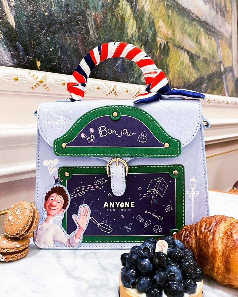 And if accessories feel like the right vibe for you, then @PixarStyle has plenty to choose from! Let’s head to Remy’s Ratatouille Adventure at EPCOT as the next Pixar inspired place to pose for a photo. Take a seat on the edge of the fountain to capture the full Parisienne experience behind you. With this bag, and a French beret, you’ll be perfectly on theme, très chic.