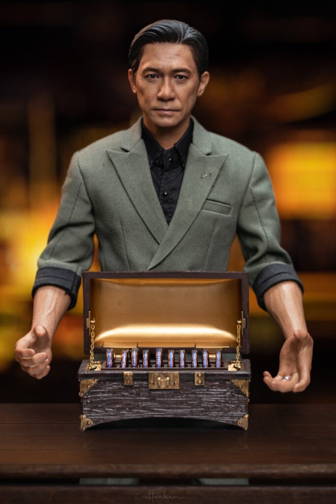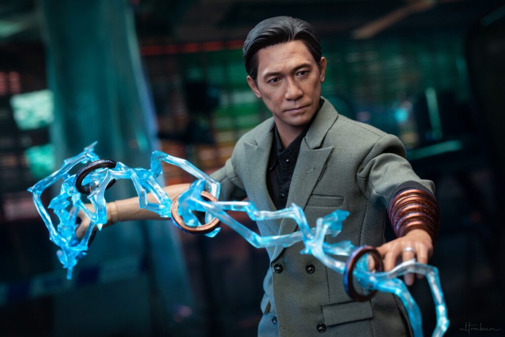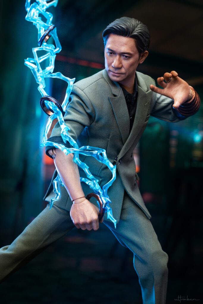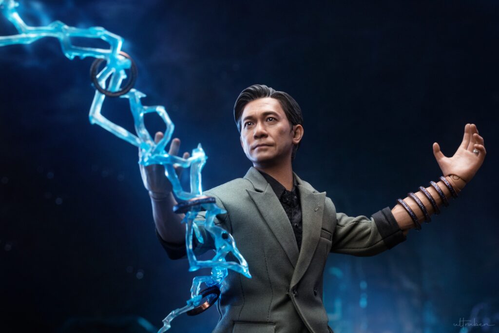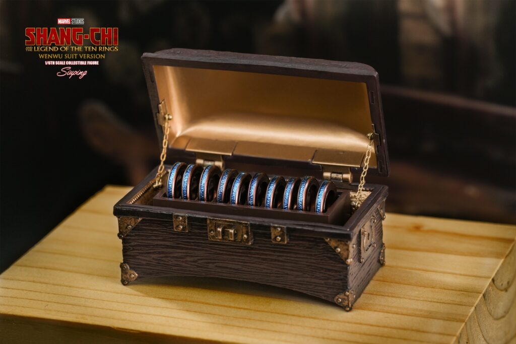Masterfully crafted based on the appearance of actor Tony Leung as Wenwu in the movie, the figure features a newly painted head sculpt; beautifully tailored costume; a delicate treasure chest with ten rings, an additional set of rings, a pair of interchangeable forearms wielding the rings specially painted with luminous reflective effect, a translucent blue effect accessory with rings and a figure stand.