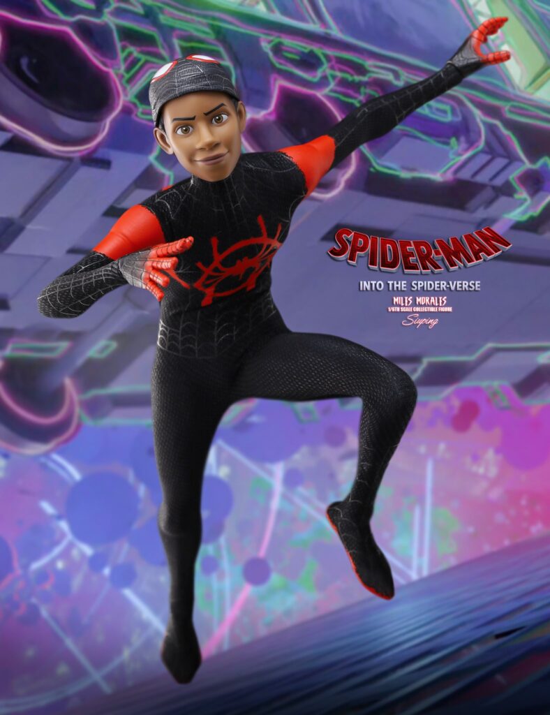 The highly poseable figure features two newly developed face sculpts capturing Miles Morales’ iconic expressions in the Spider-Man: Into the Spider-Verse, a finely crafted hair sculpture, a partially masked accessory attachable to the face sculpts, a masked head sculpt with multiple pairs of interchangeable eye pieces to create different expressions, a beautifully tailored red and black Spider-Man suit with web pattern, highly detailed outfits recreating Miles’ casual style and the graffiti painting style, matching interchangeable hands, an extremely wide variety of accessories including a spray can, a Spider-Man costume pack, assorted web accessories, a comic art inspired character backdrop with decorative stickers, also a dynamic figure stand for aerial poses.