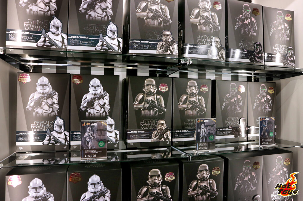 Bring home the Hot Toys Exclusive 1/6th scale figures including Stormtrooper (Chrome Version), Death Trooper (Black Chrome Version), and Clone Trooper (Chrome Version), as well as Star Wars Cosbaby & Cosbi collection and movie merchandise. Items also available at Osaka and Nagoya Flagship Stores.