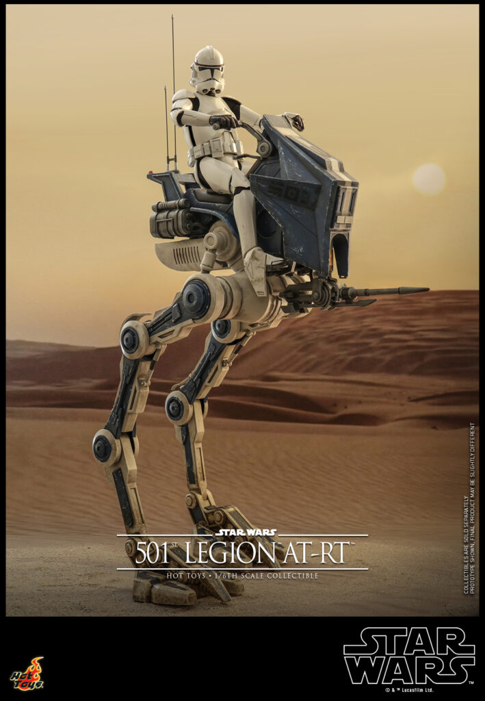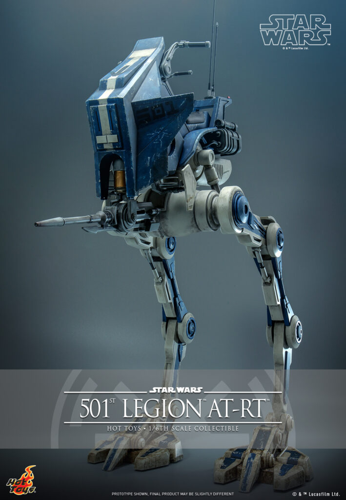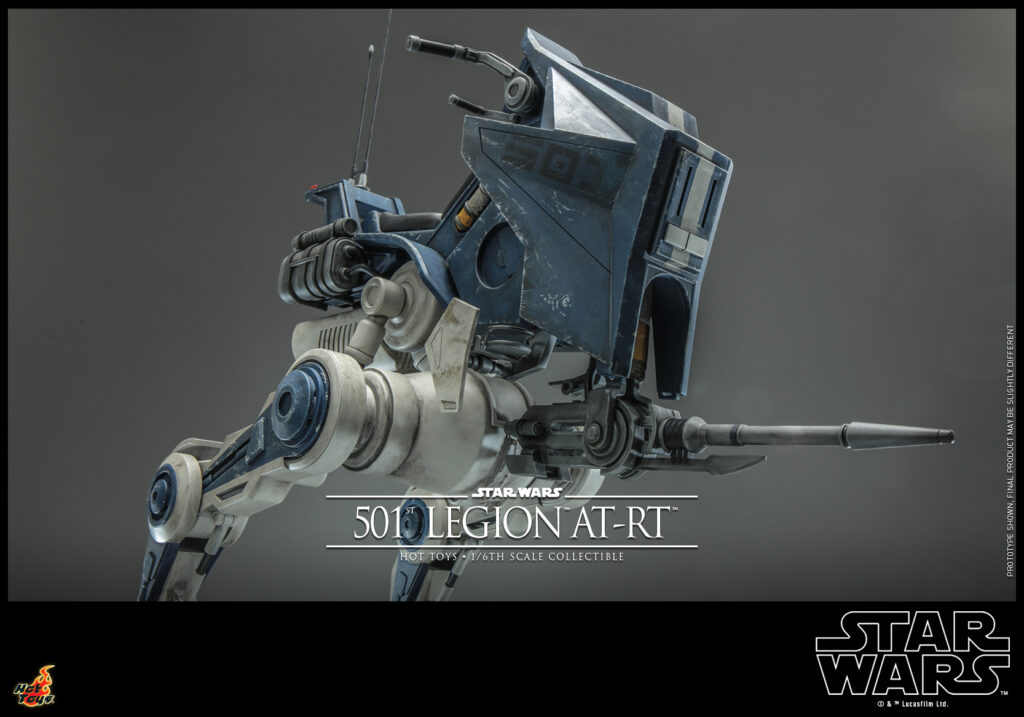 The stunningly crafted 1/6th scale 501st Legion AT-RT transport stands at approximately 64cm tall with the battalion’s signature blue paint application and 501 marking with weathering effects, as well as an astonishing range of articulations allowing different display options.
