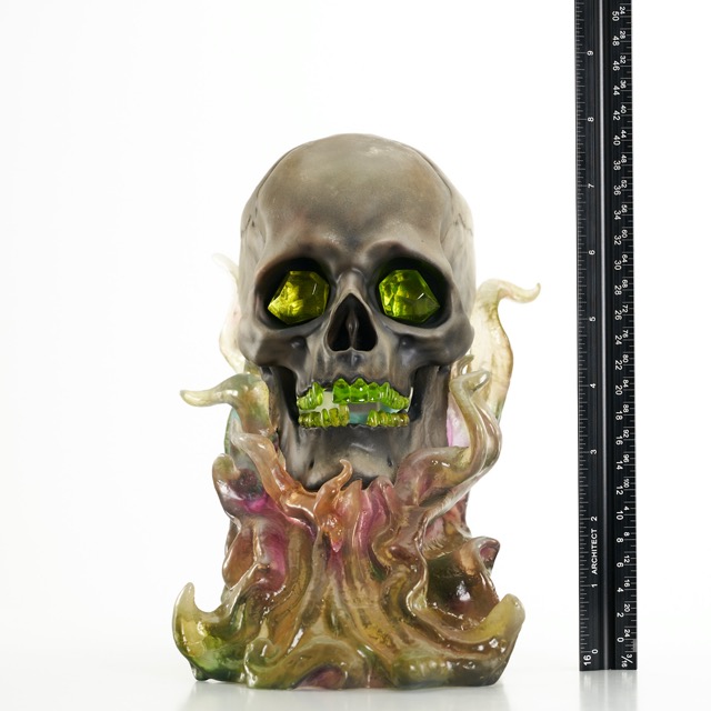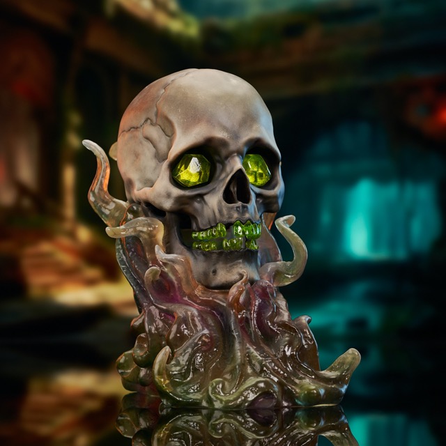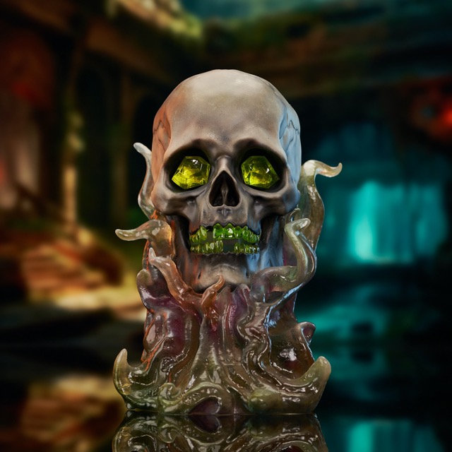A Diamond Select Toys release! A disembodied master sorcerer is now the latest Dungeons & Dragons item from DST! There is no cooler way to store your dice than inside a smoking human skull with faux-jeweled teeth and eyes. Measuring approximately 10 inches tall, this resin replica of a Demilich is actually a holder for a set of roleplaying dice! It comes packaged in a full-color box. Dice not included. Limited to 3000 pieces. Designed by Caesar, sculpted by Sandro Luis Sampaio! SRP: $200.00