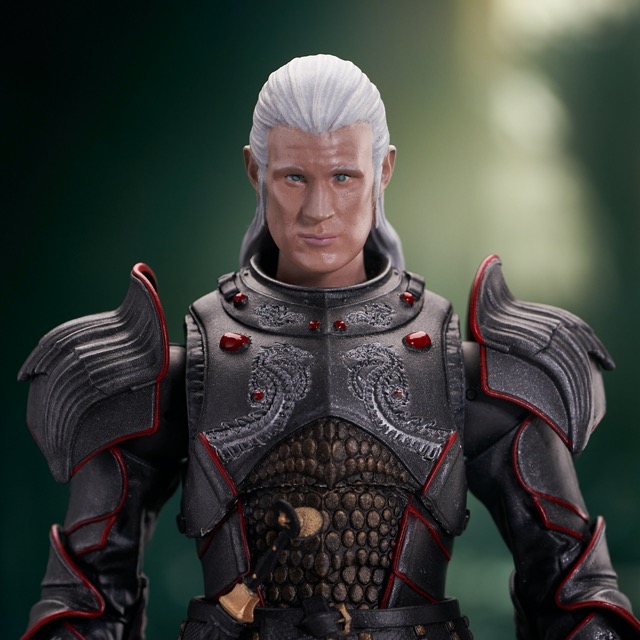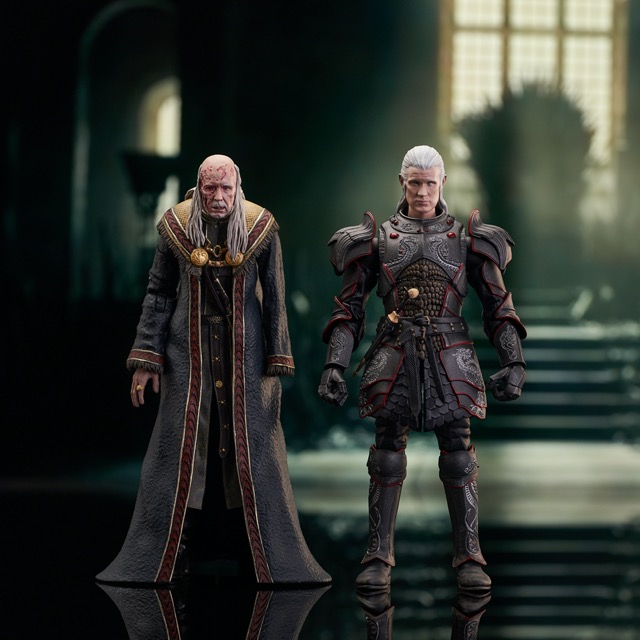 A Diamond Select Toys release! Bring home the drama of Westeros! Soaring out of the HBO Series Game of Thrones: House of the Dragon, the two brothers at the center of all events kick off an all-new line of action figures! Daemon Targaryen and his brother Viserys Targaryen are each sculpted in 1/10 scale, at approximately 7 inches tall, and each features multiple points of articulation. Daemon features detailed armor, as well as a sword, dagger, dragon egg and removable helmet; Viserys includes a cane, a removable mask and crown, and an elaborate cloak fit for a king! Each comes packaged in a full-color window box. Designed by Eamon O’Donoghue, sculpted by Gentle Giant Studios! SRP: $29.99/ea.