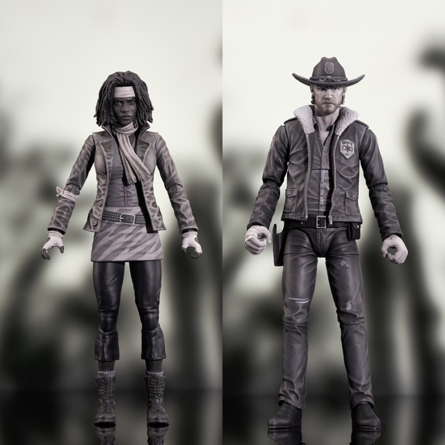 A Diamond Select Toys release! We are the Walking Dead! The hit comic book series comes to life as an all-new line of detailed action figures! Beginning the zombie apocalypse are hero Rick Grimes, with a bag to carry a variety of weapons, and heroine Michonne, with her trademark katana sword and additional accessories. Available in black-and-white to channel the feel of the groundbreaking comic, each 1/10 scale, 7-inch figure features 16 points of articulation, and comes packaged in a full-color window-box. Sculpted by May Thamtarana and Paul Harding! SRP: $24.99/ea.