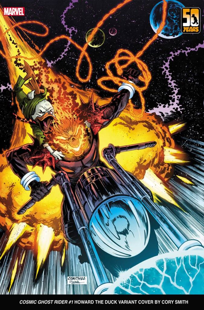 New York, NY— January 3, 2023 —Next year marks 50 years of one of the strangest and most endearing characters in all of comics—HOWARD THE DUCK! Marvel Comics will pay tribute to the iconic fowl with a year-long series of variant covers featuring the lovable loner teaming up across the Marvel Universe. From nabbing the Infinity Gauntlet to battling alongside Mary Jane and Black Cat, these delightful pieces showcase Howard the Duck’s one-of-a-kind style, and fans can find them gracing the covers of Marvel’s hottest titles starting in February!
