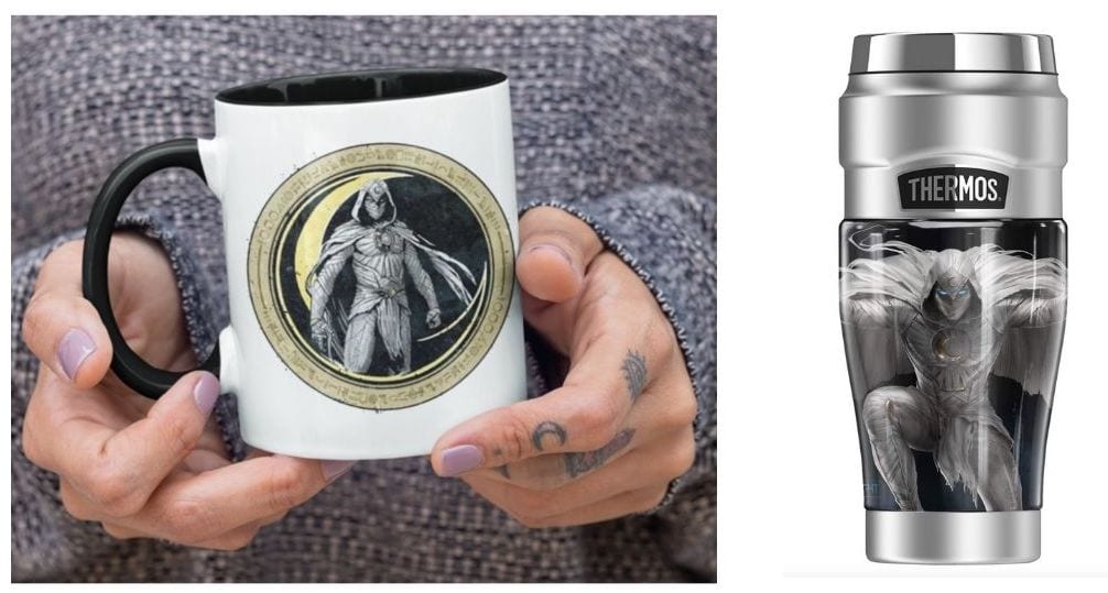 Gear up with the latest “Moon Knight” swag! Start your morning off right with a Moon Knight crescent moon mug or quench your thirst with a Moon Knight stainless steel thermos.