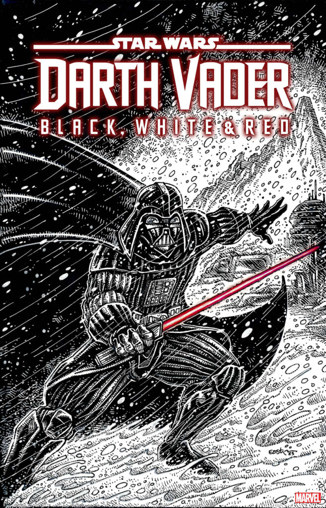 New York, NY— May 11, 2023 — Launched last month, STAR WARS: DARTH VADER – BLACK, WHITE & RED is bringing together some of the industry’s hottest talent to tell all-new tales of terror from throughout the Dark Lord of the Sith’s brutal history! Told in stunning black, white, and red, this first-of-its-kind Star Wars title will also mark a legendary comics creator’s first foray into the galaxy far, far away—Teenage Mutant Ninja Turtles co-creator Kevin Eastman has drawn an all-new cover for the final issue of the series, STAR WARS: DARTH VADER – BLACK, WHITE & RED #4!